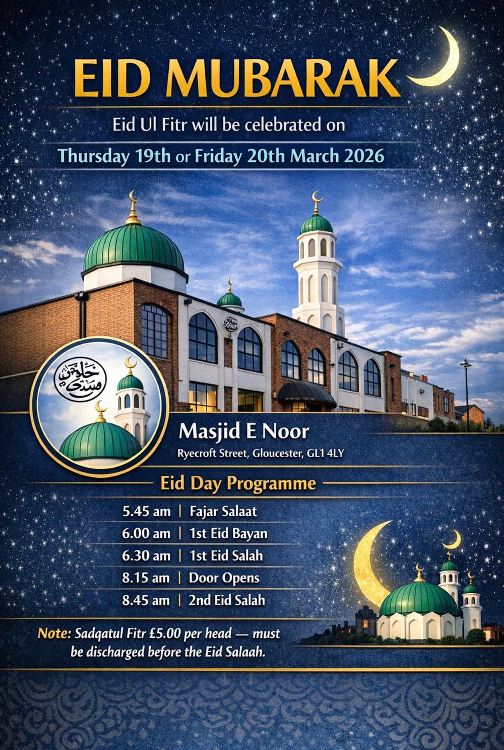 Please visit and bookmark this page: https://masjidenoor.org.uk/mobile