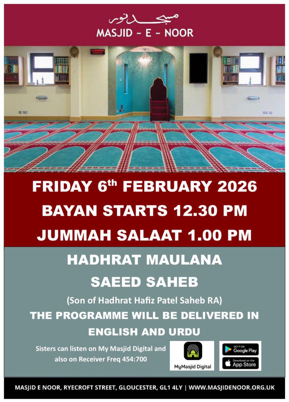 Please visit and bookmark this page: https://masjidenoor.org.uk/mobile
